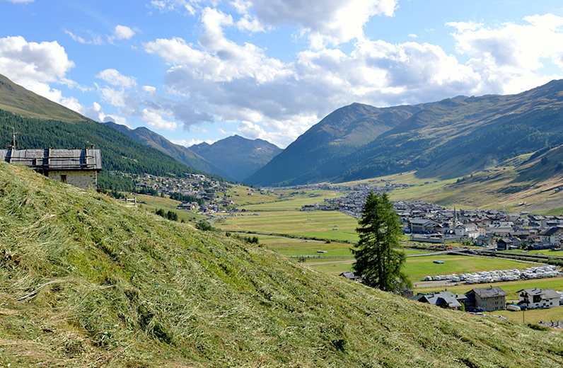 Eine schöne Wanderung über bequemen Wanderwegen an der westlichen Talseite des Livignotales über Pònt Lònch zu den verschiedenen Téa, den charakteristischen Almen in den Livigno Alpen in der norditalienischen Region Lombardei.