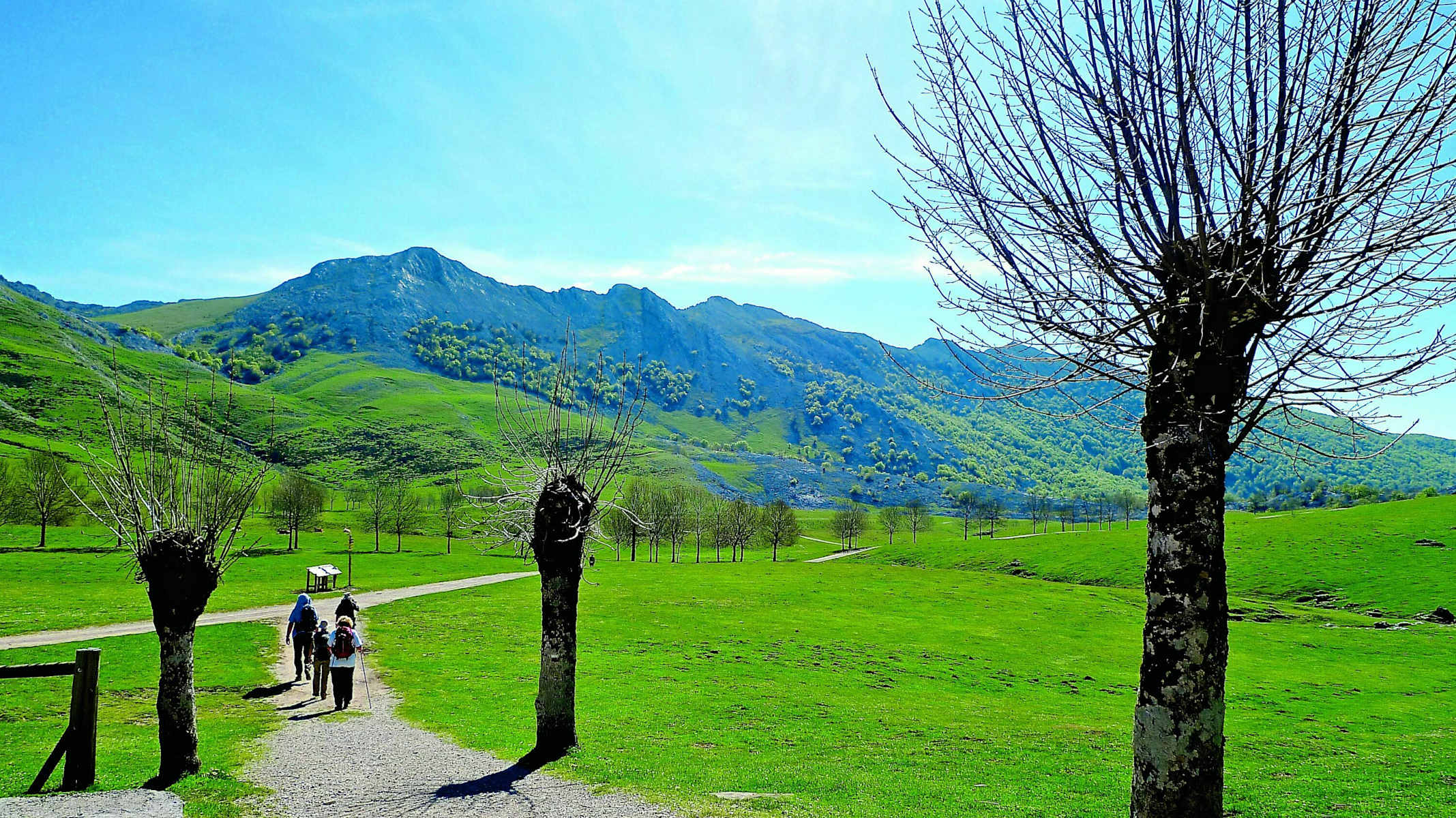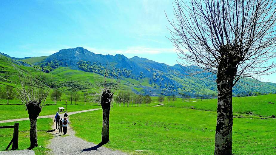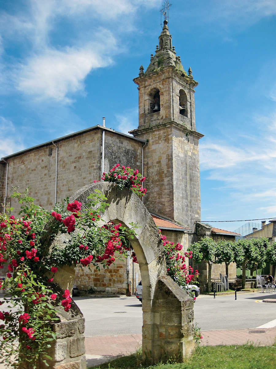 Wir folgen den rot-weißen Markierungen des GR in Richtung Urbia. Dazu lassen wir die Wallfahrtskirche rechts hinter uns und gehen die Straße nach oben in Richtung der letzten Häuser. Den Hinweisschildern nach Urbia folgend, steigen wir stetig bergan und gehen immer geradeaus. In der Nähe einer Quelle kommen wir an eine Kreuzung mit drei Wegen, von denen wir den mittleren nehmen, und folgen weiter den Schildern nach Urbia. Nach einigen Minuten auf einem breiten, schattigen Weg stoßen wir links auf die Quelle von Erroiti. Der Weg geht im Zickzack durch schattenspendenden Eichen- und Pinienwald weiter aufwärts auf den Hügel von Elorrola. Dabei folgen wir immer den rot-weißen GR-Markierungen und kommen schließlich auf dem Pass an. Wir gehen auf dem gleichen Weg weiter und erreichen bald die Einsiedelei Nuestra Señora de Urbia (1924), einen wunderschönen Platz mitten in den Bergen mit Weiden, Bäumen, Schäferhütten und Weidevieh. Wenn wir auf demselben Weg weitergehen, erreichen wir bald die Schutzhütte von Urbia. Im Sommer kann man hier einkehren und es ist ein schöner Ort für eine Stärkung nach dem anstrengenden Aufstieg.