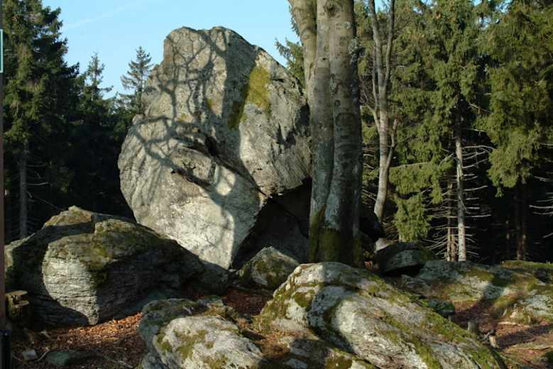 Ausgangspunkt ist in St. Englmar: Diese Etappe des Goldsteigs führt über den Höhenrücken des Vorwaldzuges. Am Skilift von Markbuchen vorbei verläuft der Weg zum Gipfel des Predigtstuhls auf einem Alm-ähnlichen Wiesenweg über die Skiabfahrt. Eine kleine Verschnaufpause bei der Felsformation, dann geht es auf pfadigen Wegen zum nächsten Anlaufpunkt, der Kuddernhütte: Einer Wetterschutzhütte, die bei Regen als Unterstand dienen kann. Hier beginnt der Aufstieg zum Gipfel des Knogl, den ein Gipfelkreuz neben einer kleinen Holzhütte ziert. Über das "Pfarrerwoidl" mit einer Rastbank führt die Tour weiter zur großen Lichtung von Ödwies. Das alte Forsthaus auf dieser herrlichen Schachtenwiese war bis in die Mitte des 20. Jahrhunderts bewohnt. Höhenmeter für Höhenmeter folgt man dann einem Forstweg bis zum gemauerten Aussichtsturm des Hirschensteins. Das Ziel dieser Etappe ist der Berggasthof Menauer am Grandsberg, etwas abseits des Goldsteigs in etwa 4 km Entfernung. Der zauberhafte Mühlgrabenweg dorthin und die atemberaubende Fernsicht vom Wirtshaus zeichnen dieses Etappenziel aus.