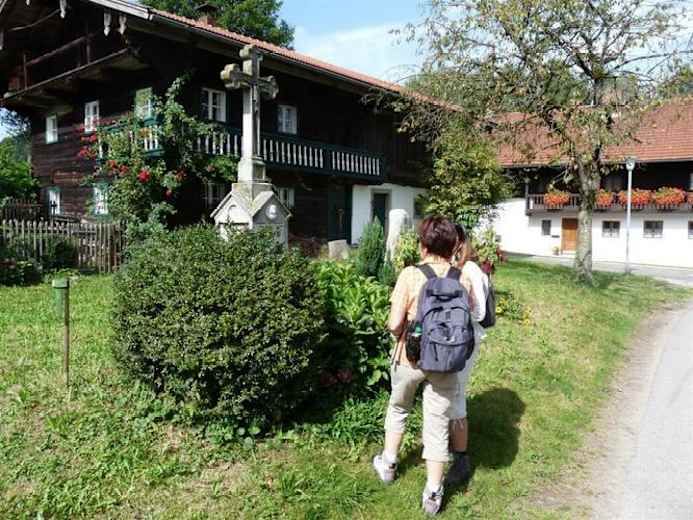 Ausgangspunkt ist beim Landshuter Haus. Ein weiterer Aufstieg würde zum Breitenauriegel führen. Die Alternative, die der Goldsteig nimmt, führt über den Bohlenweg durch das Moor, einem interessanten und vielfältigen Biotop. Auf der weiteren Strecke, die auf naturbelassenen Waldwegen liegt, erwartet einen die sagenumwobene "Hölzerne Hand" an einer großen Gabelung mit Rastplatz und schließlich ein Golfplatz. Vom Parkplatz nebenan bietet sich ein herrlicher Blick nach Süden. Auch die weitere Waldstrecke ist äußerst reizvoll und bringt einen in den Lallinger Winkel, nach Datting. Im nächsten Ort Gerholling erstaunt man nochmals über ein Kleinod typisch alter Bauernhofarchitektur. Fast ausschließlich bergab führt der Goldsteig den Wanderer anschließend nach Lalling: Er ist im Lallinger Winkel, der "Obstschüssel" Ostbayerns, angekommen.