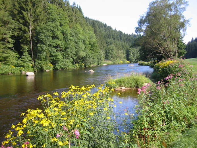 Die 21. Etappe des Goldsteigs-Süf führt von der Schrottenbaummühle an der Ilz entlang über Kalteneck und Fischhaus nach Ruderting. Lohnende Wanderung in Bayern.