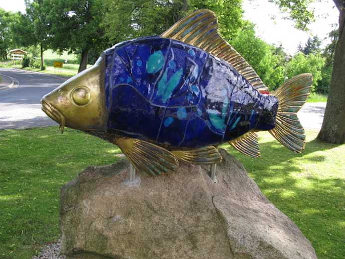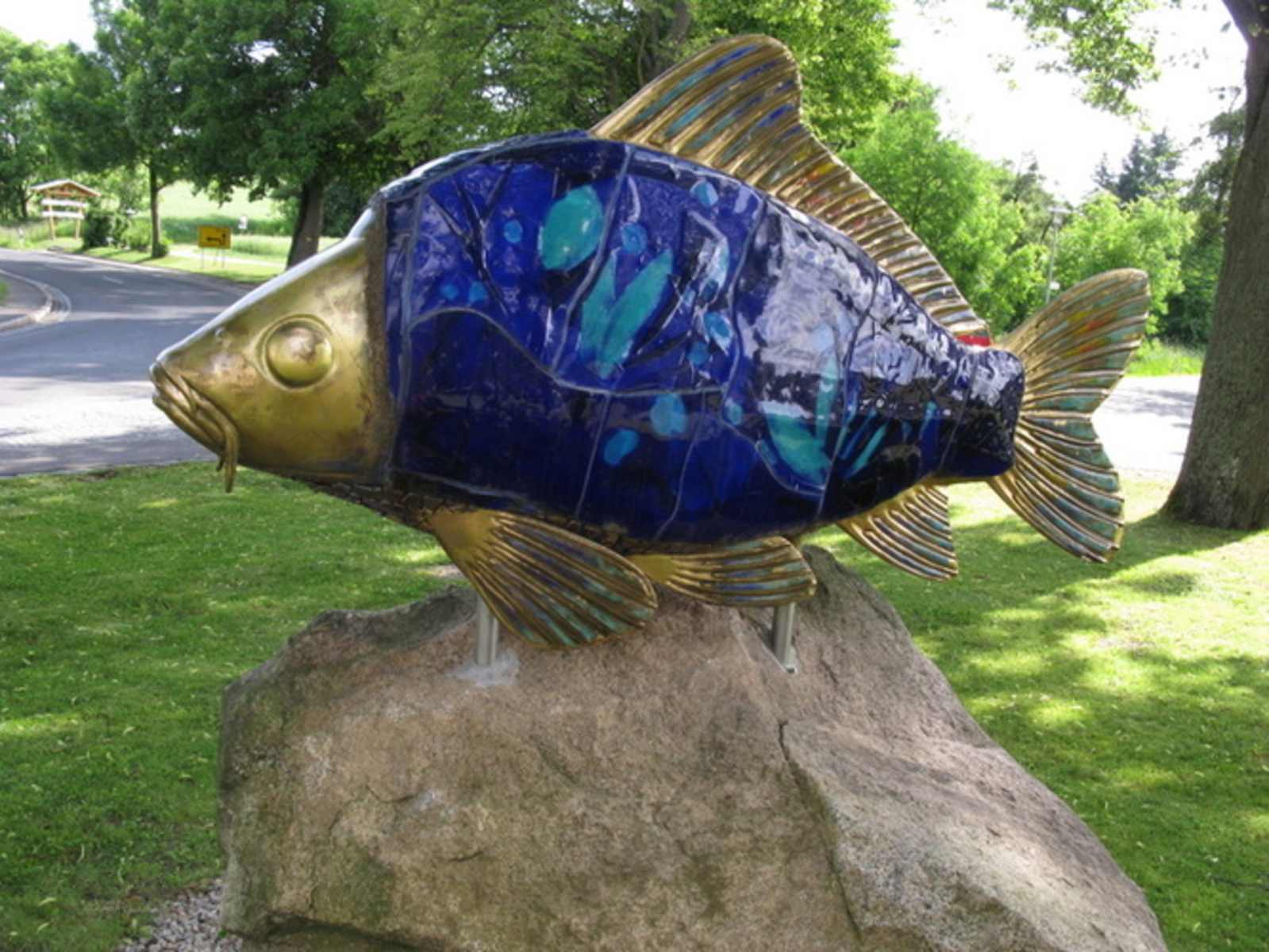 Ausgangspunkt ist in Friedenfels: Vorbei am goldblauen Karpfen - einer 2,20 m langen und 1,20 m hohen Karpfenskulptur, die zusammen mit vielen "Artgenossen" zu den Botschaftern des Landkreises Tirschenreuth gehört - führt der Weg vorbei an Wiesen und Felder zum Waldfriedhof (Gedenksteine der Freiherrn von Nothafft, die über 550 Jahre Herrscher über Weißenstein waren). Bald wird die offene Landschaft wieder von Wald abgelöst, der Wanderer stößt auf den Haferdeckfelsen und die Haferdeckmühle am kleinen Weiher. Nach Voitenthan folgt das Dorf Muckenthal mit Gasthaus. Gleich darauf folgt das Gebiet der Weiher, Teiche und Seen, durch das der Weg in einem leichten Zick-Zack-Kurs führt. Nach dem Bahnübergang bringt den Wanderer ein Trimm-Dich- und Fischlehrpfad zum landschaftlich sehr schön gelegenen Perlsee, und ein kleiner Dschungelpfad führt weiter zum Neuweiher. Nur noch die Adamsteiche liegen nun vor der Ortschaft Seidlersreuth, von wo aus ein Wiesenweg nach Falkenberg führt.
