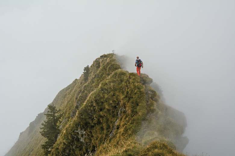 Zu guter Letzt überschreitet man noch einen attraktiven, etwas schmaleren Gratabschnitt, bevor es das kurze Stück hinunter zur Bergstation Sternen geht. Von da mit dem Sessellift zur Mittelstation und weiter mit der Gondelbahn zurück nach Weglosen.