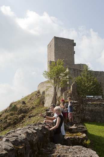 Auf der Schwarzenburgruine lohnt sich die Besteigung des Schwanbergturms (Aussichtsturm).