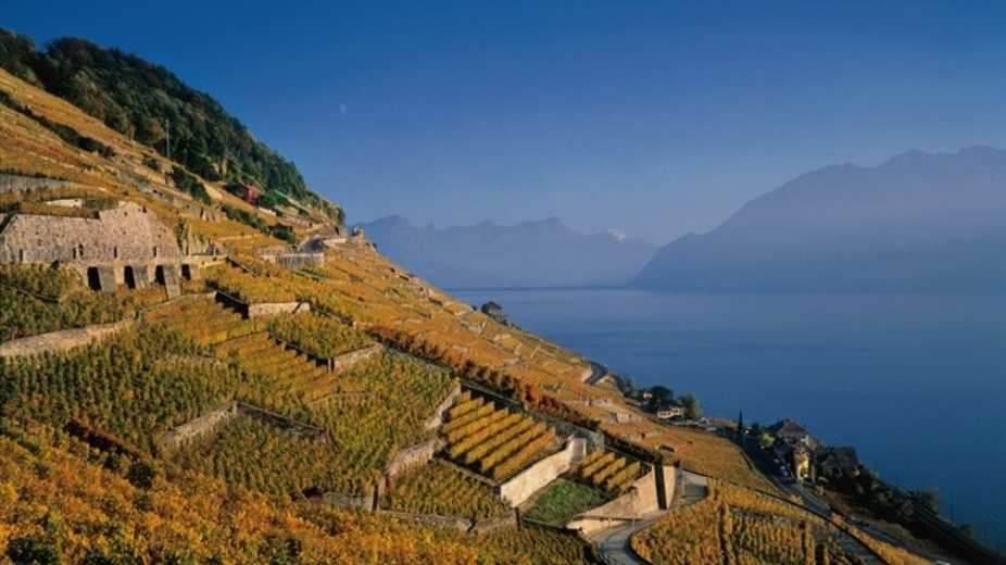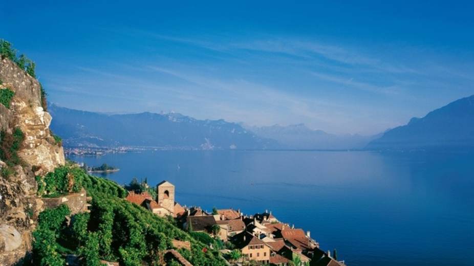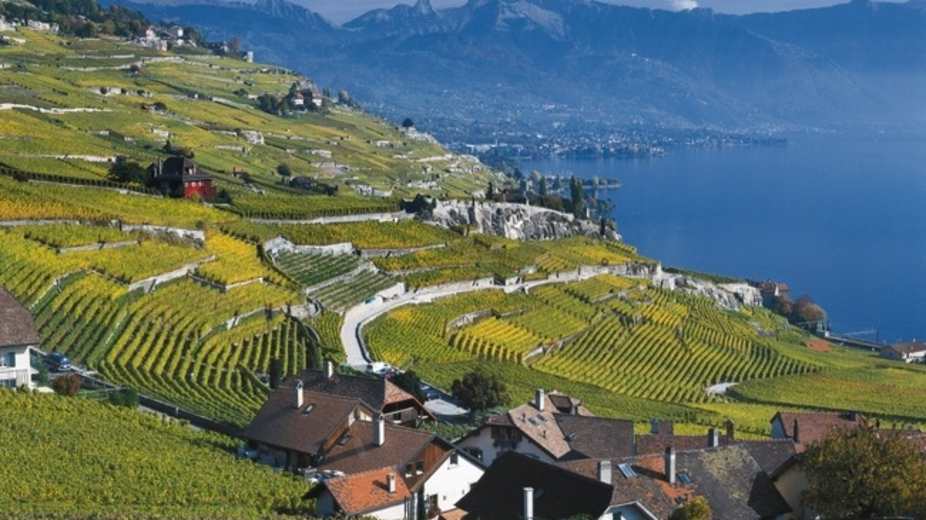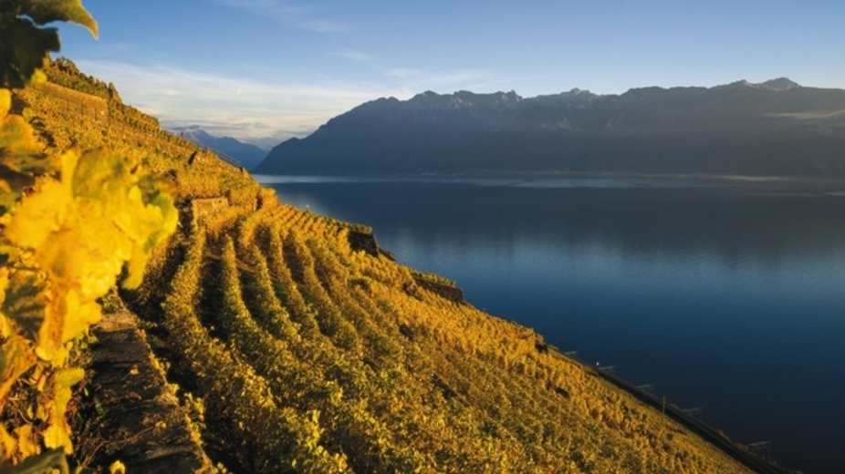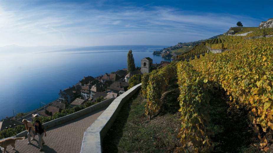 Genussvolle Wanderung im Schweizer Kanton Waadt. Vom mittelalterlich geprägten Saint Saphorin führt die Tour auf einem ausgeschilderten Weg durch die Weinterrassen des UNESCO-Weltkulturerbes Lavaux über Rivaz nach Lutry - mit Blick auf den wunderschönen Genfer See.