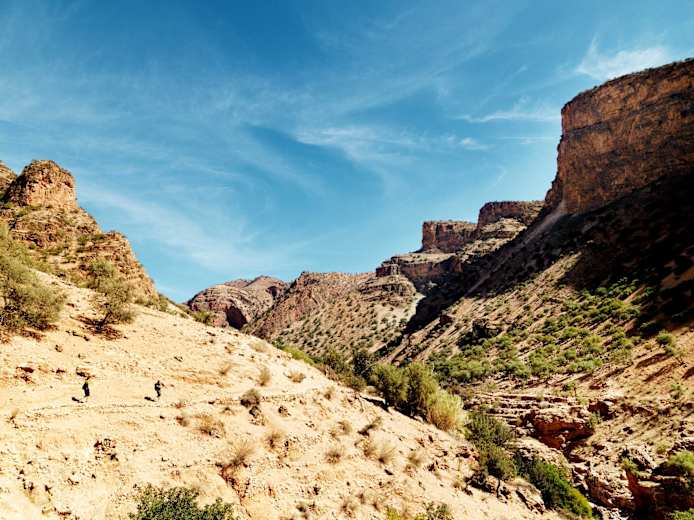 Eine einfache, aber besonders erlebnisreiche Wanderung im Anti-Atlas von der Siedlung Azour durch ein Trockenflußbett im Südosten von Taroudant, dem Hauptort der Sous-Ebene im Süden Marokkos. Die Wanderung führt an Siedlungen und den freundlichen „Chlöh-Berbern“ vorbei. Die größte Herausforderung dieser Wanderung ist die Orientierung, da man entlang unmarkierter Pfade und Wege wandert.