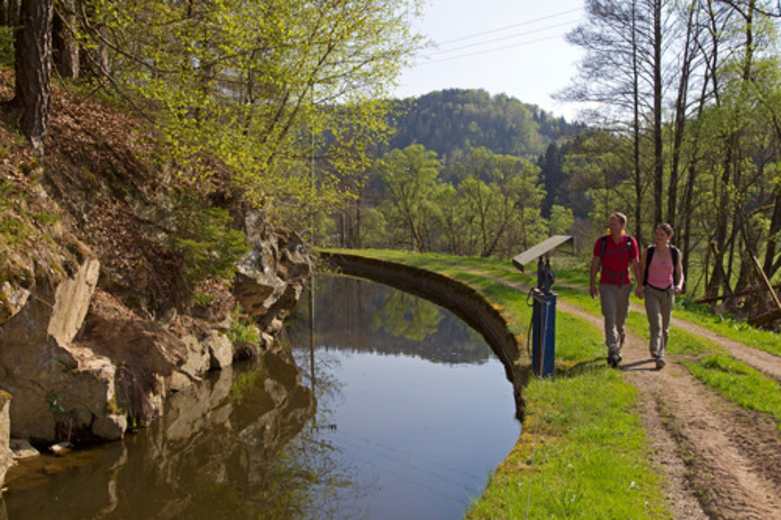 Auf der Goldsteig-Etappe N8 Oberviechtach - Rötz hat man als Goldsteig-Wanderer die Möglichkeit, die Hauptroute zu verlassen, um auf einen sehr reizvollen Goldsteig-Zubringer-Rundweg einzuschwenken: Der Goldsteig-Rundweg Nr. 9c führt von Neudeck durch das Aschatal und Katharinanthal. Lohnende Wanderung in Bayern.