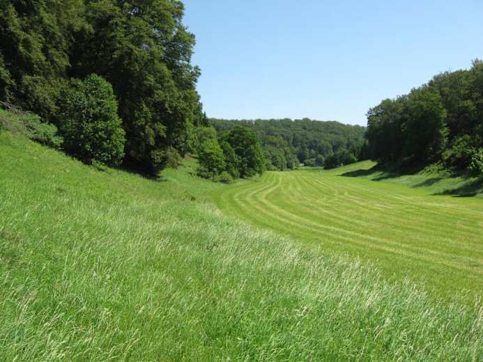 Bei schlechter Witterung ist der Abstieg zur Ramensteinhöhle nicht möglich. Alternativ folgt man den Albvereinswegen Richtung Nattheim (Wegkennzeichnung roter Dreiblock und rote Raute). Der Weg führt durchs Stephanstal zum Alten Sportplatz. Hier trifft man wieder auf den Albschäferweg.