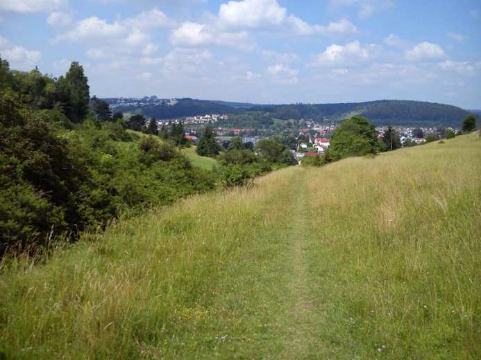 An den Sportanlagen auf dem Moldenberg vorbei, kommt man ein kurzes Stück auf einen schönen Waldpfad, hier begleiten die Sportgeräte des „Trimm-Dich-Pfades“. Rechts dem geschotterten Forstweg folgen, dann an der imposanten Eiche links auf einen Waldpfad. Nach etwa 300 m rechts dem schnurgeraden Wiesenweg, vorbei an der Jakobshülbe, bis zur Gehrenhütte folgen. Weiter dem Wanderzeichen folgend, überquert man die Autobahn A7 und erreicht schließlich die Ramensteinhöhle. Achtung beim Abstieg zur Höhle, der Pfad kann bei schlechter Witterung nicht begehbar sein. Auf einem schönen Wiesenweg wandert man weiter durch das Zimmertle zum Alten Sportplatz und weiter bis zur Schäferei Wiedenmann in Nattheim.
