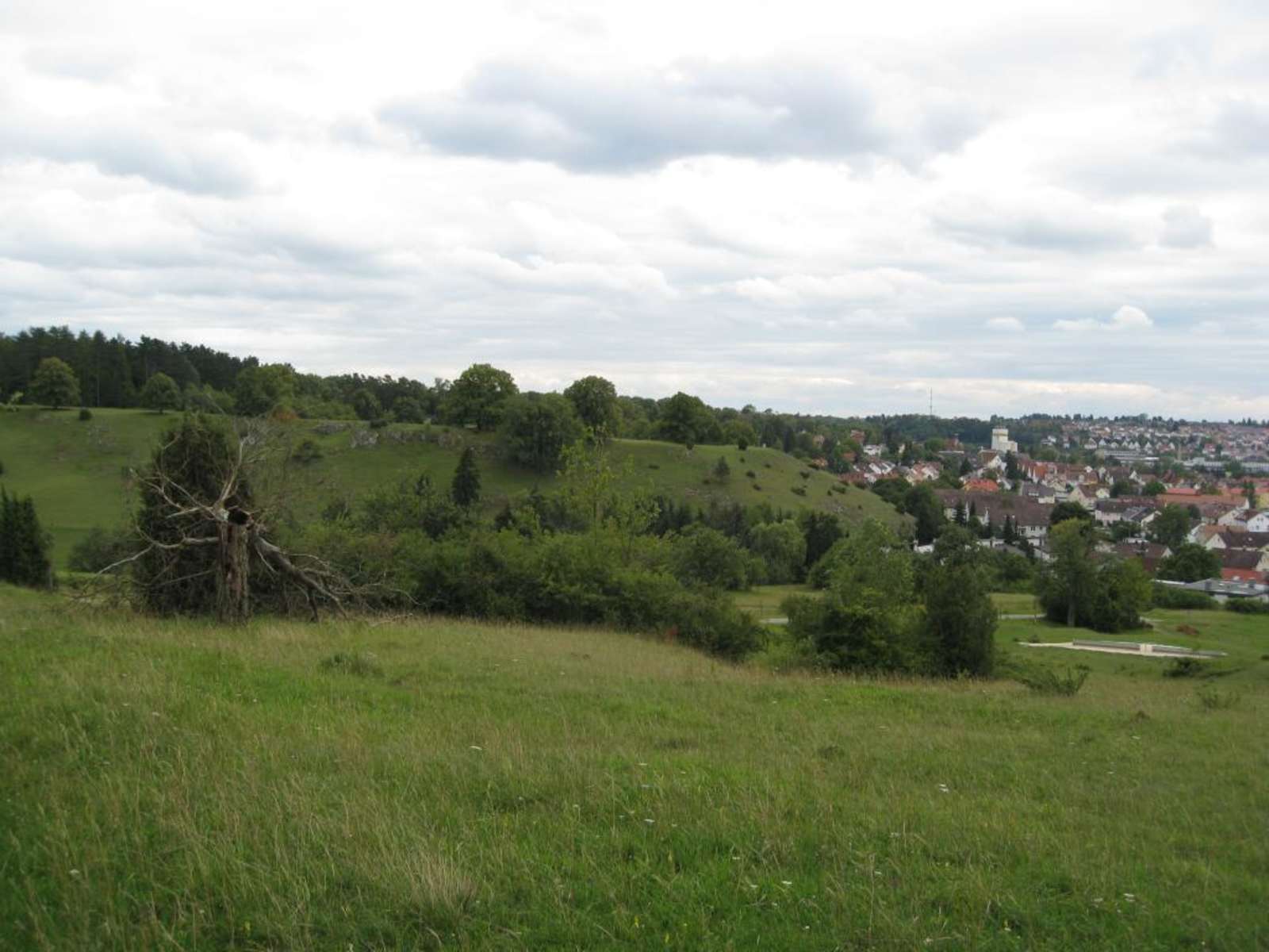 Vorbei an dem Zigeunerfelsen gelangt man zur äußeren Mühle. Man folgt der Eichstraße nach Norden und quert nach etwa 500 m die Kreisstraße DLG6. Nun geht es durch den Zöschinger Forst bis zur Kreuzbuche, dem ersten bayrischen Bürgerwindpark. An der Kreuzbuche biegt man links ab und wandert auf den gut ausgebauten Forstwegen weiter durch den Staufer Forst. Man kehrt zurück auf die Heidenheimer Gemarkung. Man wandert am Waldrand entlang der Phillipsburg, quert die K3006 und über die Weiherwiesen erreicht man den Rötenberg. Der letzte Aufstieg ist geschafft.