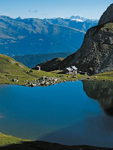 Rückblick zum Obstansersee, über der Obstanserseehütte der Großglockner. Foto: Evamaria Wecker, Rother Bergverlag