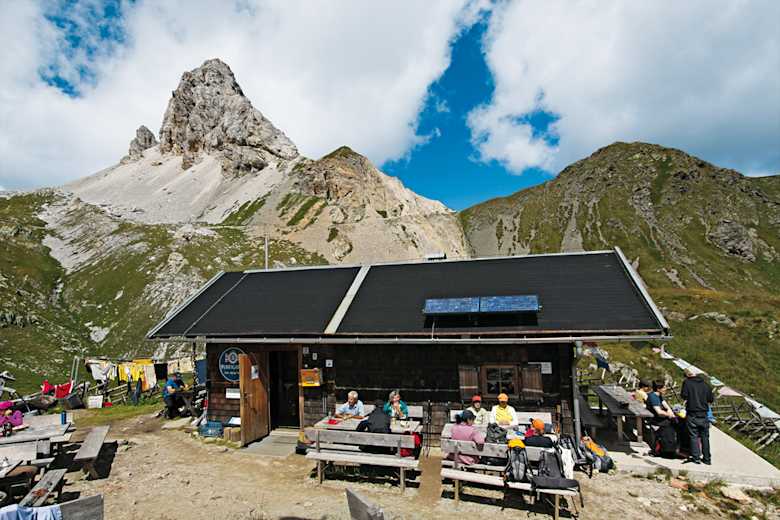 Filmoor-Standschützenhütte, 2.350 m, ÖAV, bew. Anfang Juli–Anfang Okt., Tel. Hütte 0043 4848 20037, Tel. mobil 0043 664 112 71 53. Sollten die wenigen Schlafplätze ausgebucht sein, muss man weiter zur Porzehütte.