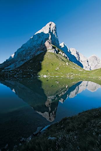 Durch das Reich der Murmeltiere und der Fossilien in Kärnten – Im Abstieg von der Wolayerseehütte zum Gasthof Valentinalm (früher: Untere Valentinalm) gilt es zunächst, das Valentintörl als sperrenden Riegel zu überwinden. Es verbindet die elegante Pyramide des Rauchkofels mit der Hohen Warte, dem höchsten Berg der Karnischen Alpen.