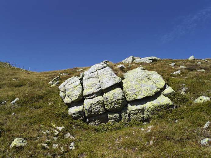 Der Wald lichtet sich rasch und es sind noch etwa 500 Hm zu überwinden. Ein feiner Panoramablick belohnt jedoch ab der Scharte, ein einfacher Kamm führt ohne besondere Steigungen weiter westwärts über die Hundshöhe zum Gipfel des Steinnocks (2.197 m). Nach einer Gipfelrast mit herrlichem Panoramablick auf die Gurktaler Alpen im Norden und die umliegenden Nockberge-Gipfel wandert man zum Wegweiser bei der Steinhöhe, wo man den Abstieg im Südhang des Steinnocks beginnt. An heißen Sommertagen kann es hier unangenehm warm werden - ausreichend Wasser sollte man dabei haben.