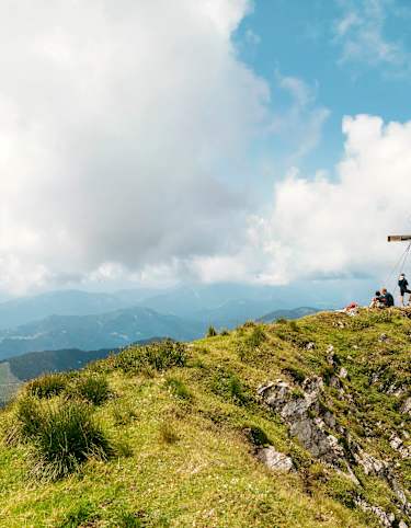 Oben angekommen hat man atemberaubenden Weitblick auf die zahlreichen Gipfel der Salzburger Goldberggruppe sowie auf die Kärntner und Osttiroler Bergwelt.