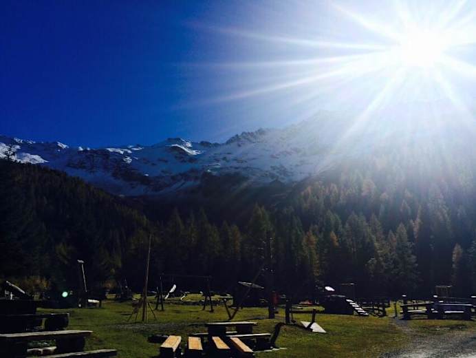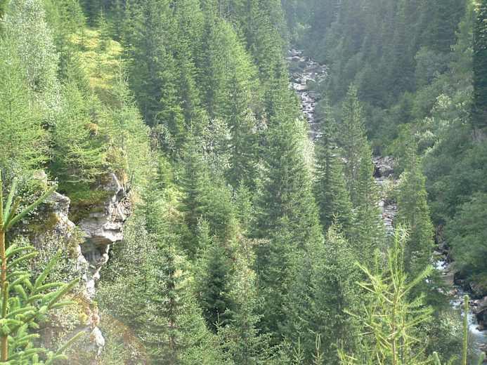 Es folgt ein einfacher Wanderweg durch ein Stück Wald und man erreicht eine Aussichtsterrasse. Nach einer kleinen Verschnaufpause spaziert man weiter zum Parkplatz Lenzanger und erreicht nach weiteren 30 Gehminuten über einen Forstweg den Talschluss und das Naturfreundehaus Kolm-Saigrun (1.598 m).