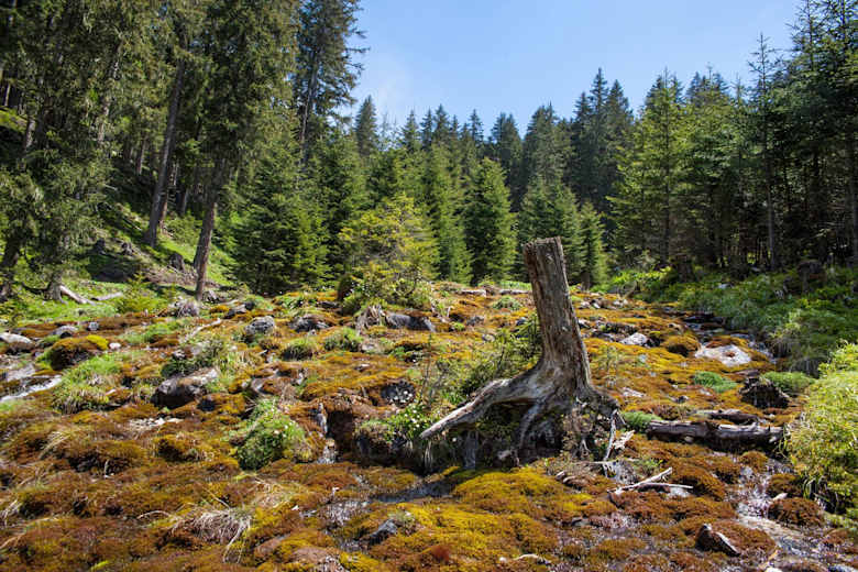 Etwas oberhalb der Quelle befindet sich ein mystischer kleiner See, der den klingenden Namen „Waldgeheimnis“ trägt und wie durch Magie immer wieder verschwindet und wieder auftaucht.