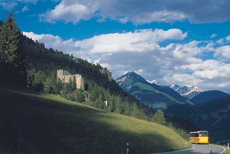 Auf der Hochburg der Burgruine Belfort, die aus dem 13. Jahrhundert stammt, bietet sich ein herrlicher Ausblick über das Albulatal.
