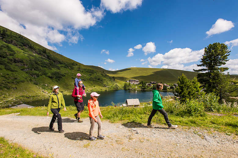 Vom Ufer des kristallklaren Falkertsees führt diese eindrucksvolle Rundwanderung vorbei an der Seehütte und über den zackigen Jagasteig erst hinauf zum Rödresnock (2.310 m) und danach weiter zur Falkertspitze (2.308 m).