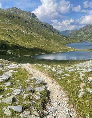 Anschließend folgt man dem Alpe Adria Trail über das Oswaldeck und über einige Serpentinen hinab zum Falkerthaus und der Lärchenhütte, wo man sich für den Rückweg auf den Falkert noch stärken kann.