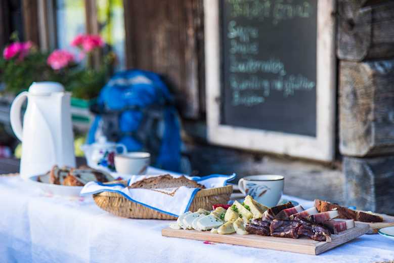 Die überaus charmante und urige Lamprechtalm Hütte (1.660 m) ist nicht nur die ideale Jausenstation für diese Tour, sondern verfügt auch über eine eigene Sennerei sowie eine gemütliche Sonnenterrasse. Außerdem ist die Alm bekannt für ihre köstlichen frischen Forellen mit Kräuterbutter, Erdäpfeln und Bauernbrot.