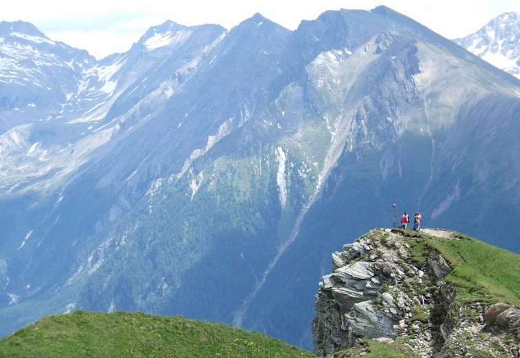 Vom Lonzaköpfels genießt man beinah ein 360-Grad-Panorama auf die umliegende Bergwelt des Nationalparks Hohe Tauern.