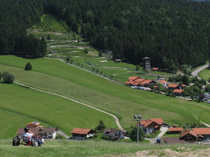 In Dießenbach bietet sich die Gelegenheit zu einer Fahrt mit der längsten Coaster Bahn im Bayerischen Wald.