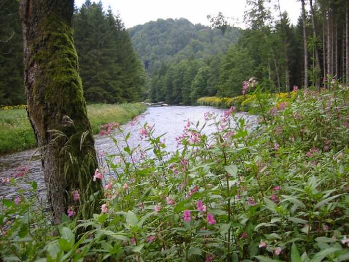 Der Goldsteig Zuweg Nr. 34 führt von Ruderting entlang des Dettenbaches zum Fischhaus. Lohnende Familienwanderung in der bayerischen Oberpfalz.