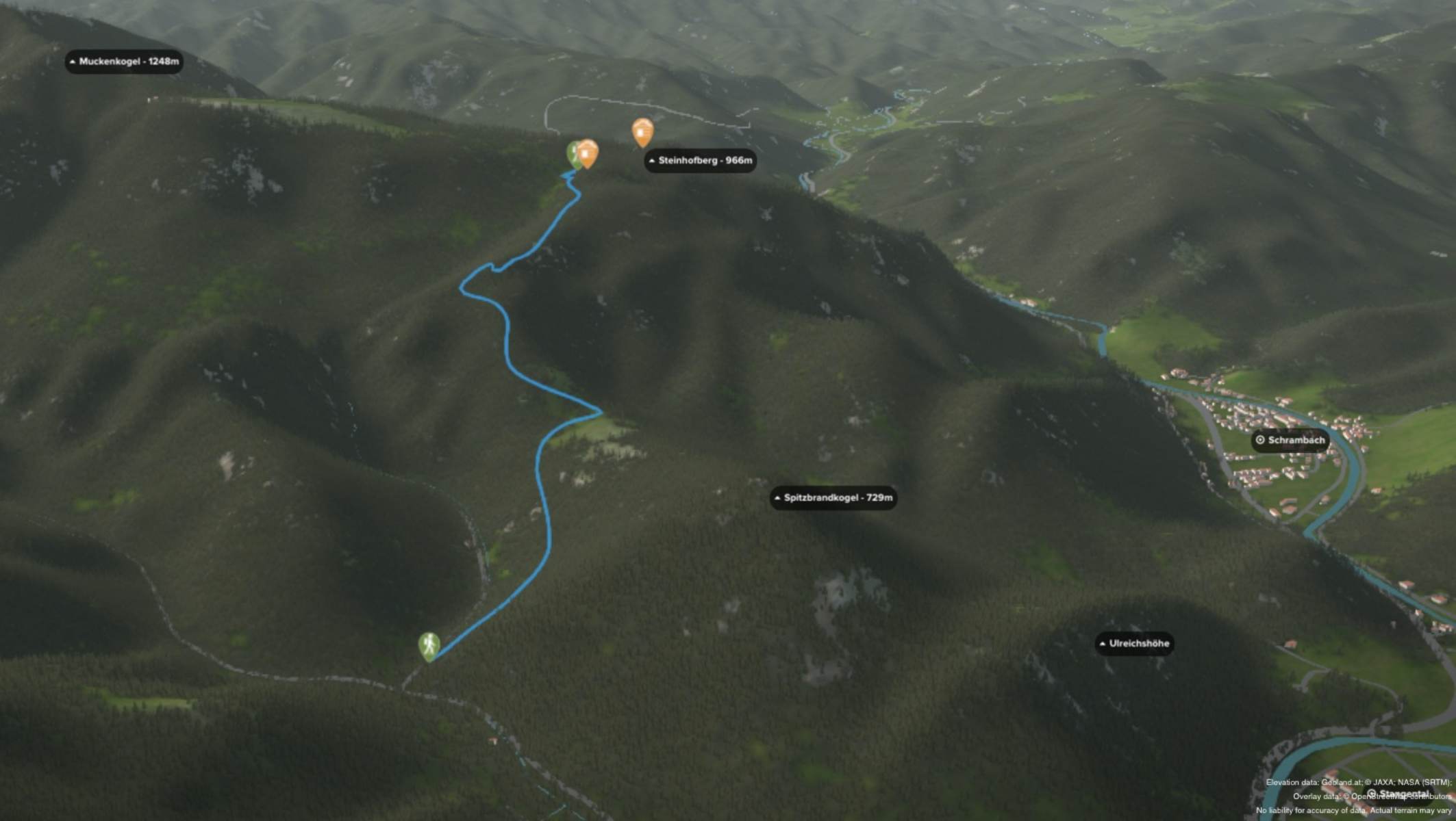 Der Jägersteig führt durchgehend markiert (Nr. 43) zur Lilienfelder Hütte. Start der Tour ist nach dem Heizwerk bzw. der Brücke beim großen Wanderparkplatz. Entlang des Osthanges am Spitzbrandkogel geht es anfangs parallel zur Lifttrasse bergauf. Man quert einen Forstweg (mit Blick zurück auf den Parkplatz und die Talstation des Liftes) und steigt dann stetig empor bis zur „Glatzwiese“ unterhalb des Spitzbrandkogels.