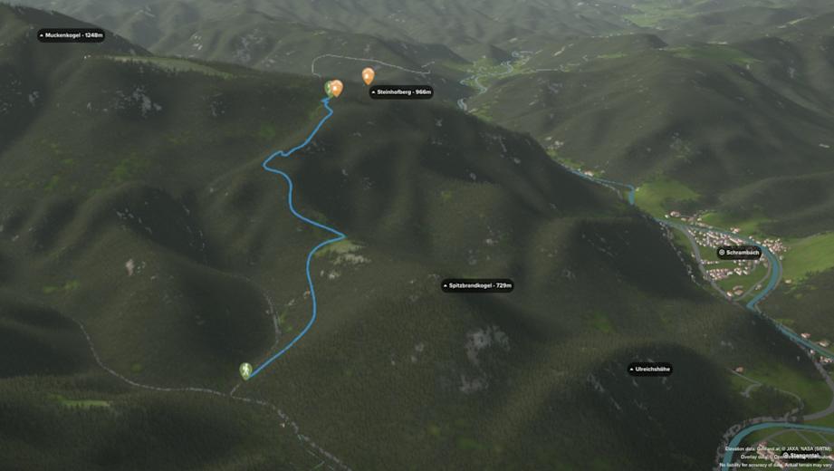 In Lilienfeld Richtung Stift abbiegen und weiter zum Muckenkogel. Kurz nach dem Fernheizwerk rechts über die Brücke zum Parkplatz.