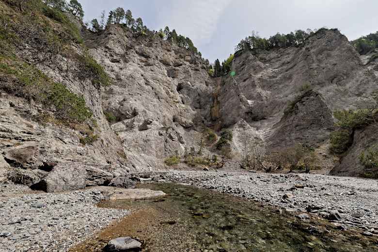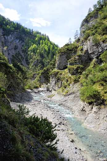 Folgt man dem Bachlauf aufwärts, so gelangt man in den wilden Teil der Ochsenschlucht. Ab der Geschiebesperre ist das Betreten der Schlucht auf eigene Gefahr möglich!