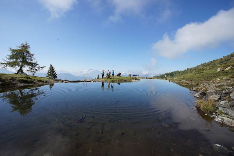 Am Wetterkreuz eröffnet sich dem Wanderer ein traumhafter Ausblick in die Karnischen Alpen und Lienzer Dolomiten. Ein herrlicher Ruheort ist der Rastplatz an der Froschlacke, der nur wenige Minuten bergab liegt.