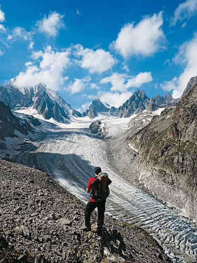 Bei der Cabane de Saleina: die atemberaubende Aussicht auf die Szenerie um die Aiguille d’Argentière. Foto: Bernd Jung