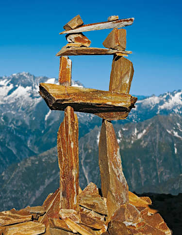 Steinmandl oder Kunst? Am Gipfel des Bristen. Foto: Bernd Jung Bildergalerie (3)