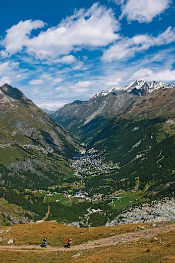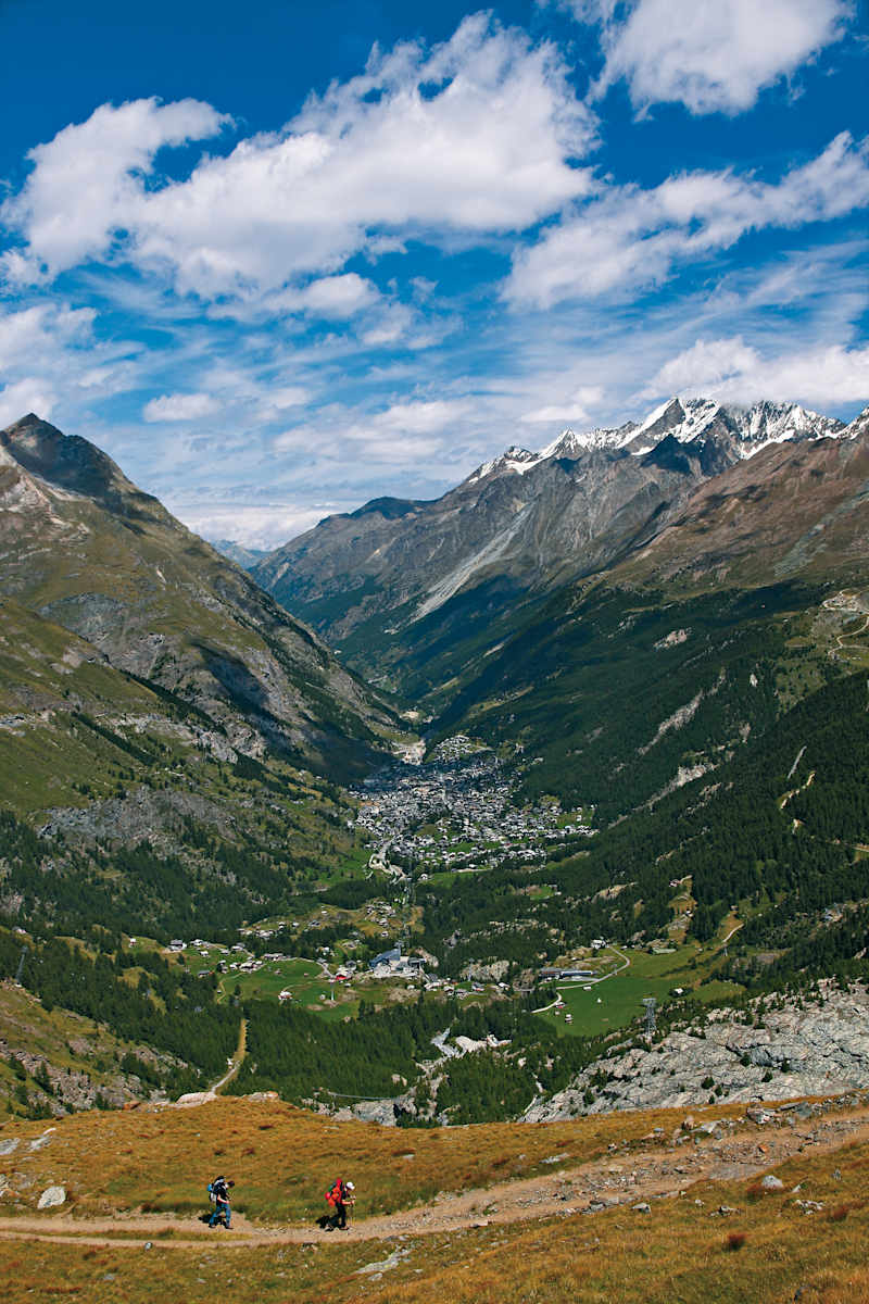 Anreise am besten mit der BVZ-Bahn nach Zermatt, 1.616 m, im hinteren Mattertal.