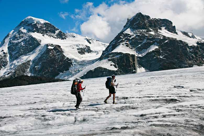 Am Schluss wartet in jedem Fall die Gletschertraverse, die freilich im Bereich des Skigebiets keinen nennenswerten Gefahren ausgesetzt ist. Erstaunlich, dass der Theodulpass im Mittelalter gletscherfrei gewesen sein und als Handelsübergang bereits Bedeutung besessen haben soll.