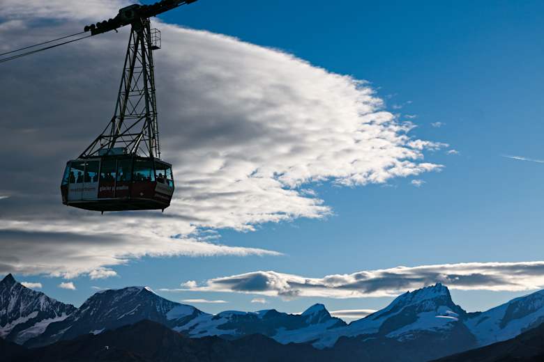 Mithilfe der Seilbahn kann die Strecke in mehreren Abschnitten abgekürzt werden. Die Talstation befindet sich im südlichen Zermatter Ortsteil Winkelmatten, Zwischenstationen in Furi, Furgg und am Trockenen Steg. Die Bergstation Klein Matterhorn, 3.883 m, kommt als Abstecher für „Schaulustige“ in Betracht.