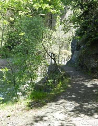 Wenige Gehminuten taleinwärts wechseln wir auf die andere Bachseite und folgen den Schleifen eines Wirtschaftsweges bergauf (eventuell über Wiesen abkürzen). Zwischen den Ställen von Combe Germain und Menovy gilt es, den knapp oberhalb verlaufenden horizontalen Waldweg anzusteuern. Auf diesem zunächst in südliche Richtung und nach einer Weile um den Hang herum gen Westen eindrehen.