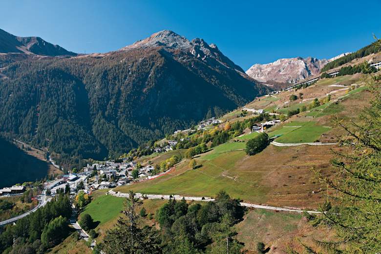 Via Plantaluc verlieren wir jetzt aber allmählich an Höhe und biegen nach ein paar Schleifen gegen das Hochtal des Grand St-Bernard ein. Wir stoßen auf eine Kehre der Passstraße und treffen wenige Augenblicke später in St-Rhémy ein. Hier wird normalerweise in einem Hotel Quartier bezogen.