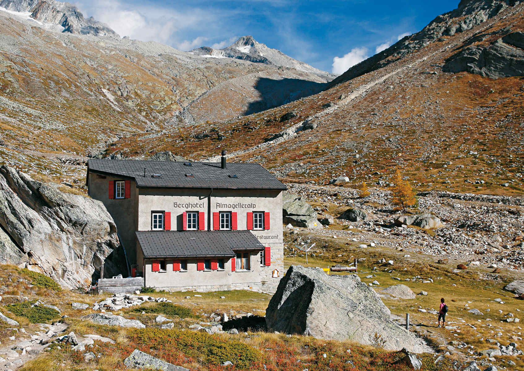 - Herbststimmung am Gsponer Höhenweg; gegenüber das Balfrin-Massiv.Foto: Mark ZahelDer unverwechselbar geformte Alphubel entragt dem zerklüfteten Feegletscher.Foto: Mark ZahelErhaben spannt sich das Panorama der Mischabel auf.Foto: Mark ZahelDer Gsponer Höhenweg ist nur vorübergehend etwas holpriger.Foto: Mark ZahelÜber dem Kreuzboden taucht das Weissmies mit seinen Hängegletschern auf.Foto: Mark ZahelFast überirdisch erstrahlt die Mischabel im Widerschein der Morgensonne.Foto: Mark ZahelBeim Weiterweg zur Almagelleralp schiebt sich das gleichnamige Horn ins Blickfeld.Foto: Mark ZahelIm Almagellertal empfängt uns ein altehrwürdiges Berghotel.Foto: Mark Zahel