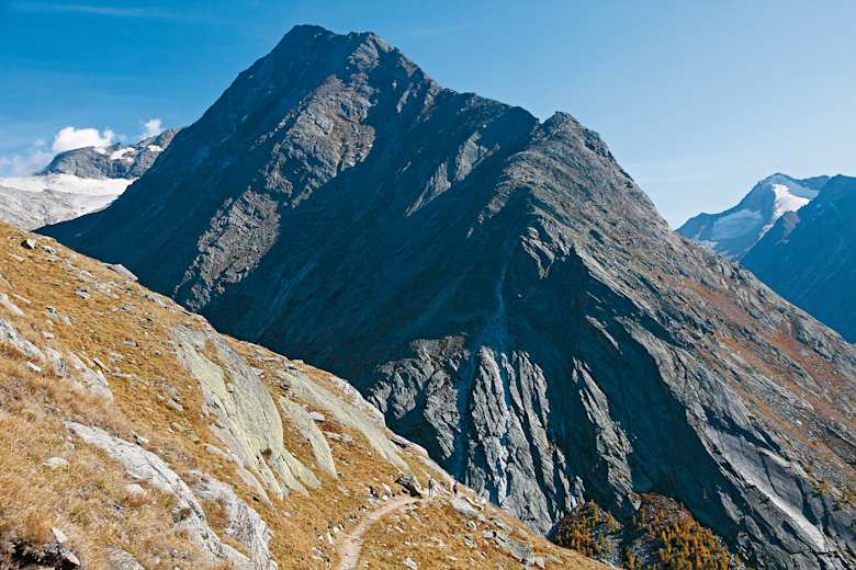 Beim Weiterweg zur Almagelleralp schiebt sich das gleichnamige Horn ins Blickfeld. Foto: Mark Zahel