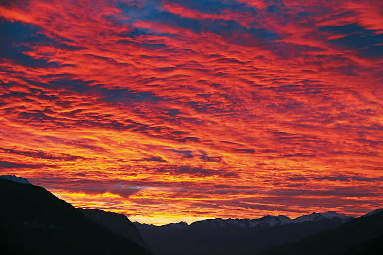Solch ein glühender Abendhimmel über dem Rhonetal ist ein seltenes Schauspiel. Der Fotograf setzte dafür keinen Farbfilter ein. Foto: Mark Zahel