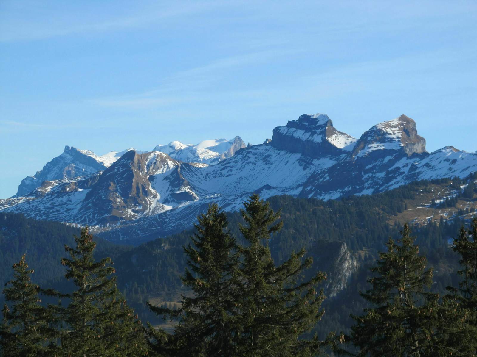 Diesem folgt man jedoch nur kurz und strebt nun weglos der neuen Bergstation, dem Restaurant Gipfelstubli und der dahinter versteckten Rotenflue (1.571 m) entgegen. Auf der Panoramaterrasse kann man bei einer kurzen Rast das vom Glärnisch bis zum Uri Rotstock reichende, herrliche Panorama geniessen.