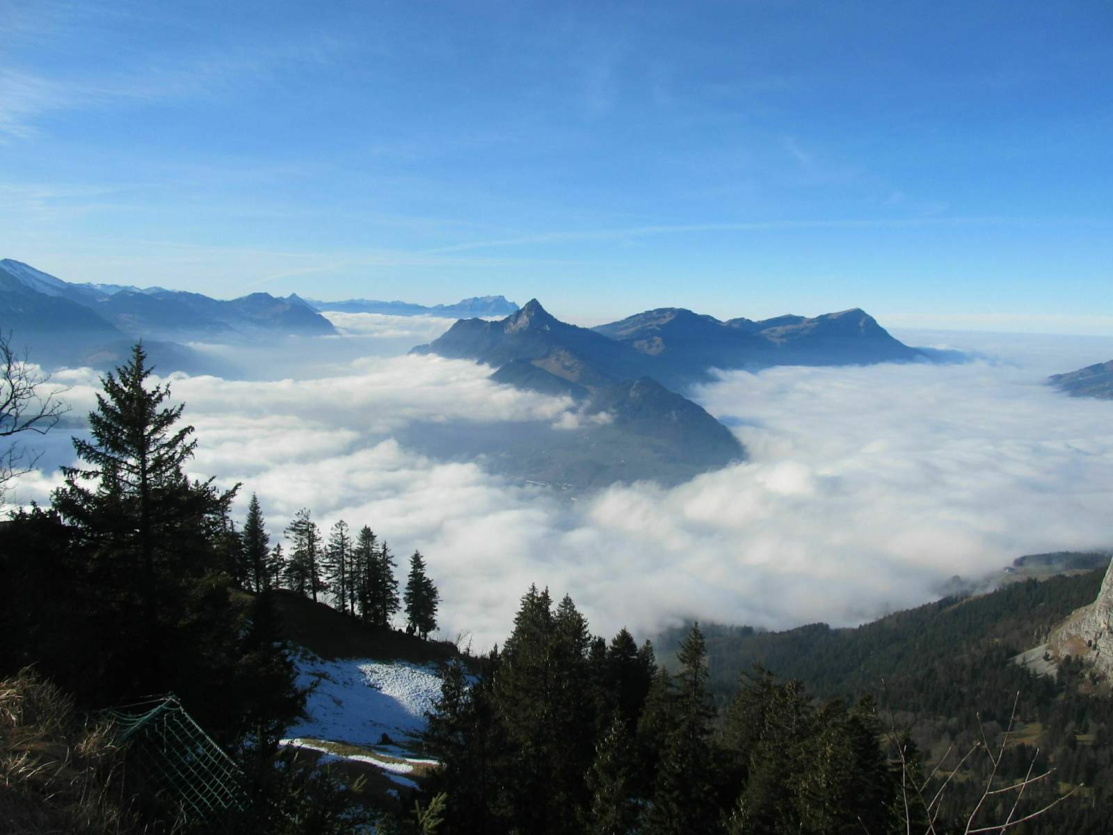 Vor dem Gross Mythen hinunter zur Alp Ober Stotzigweid Foto: Felix Deprez Gross Mythen über dem Nebelmeer Foto: Felix Deprez Bildergalerie (8)