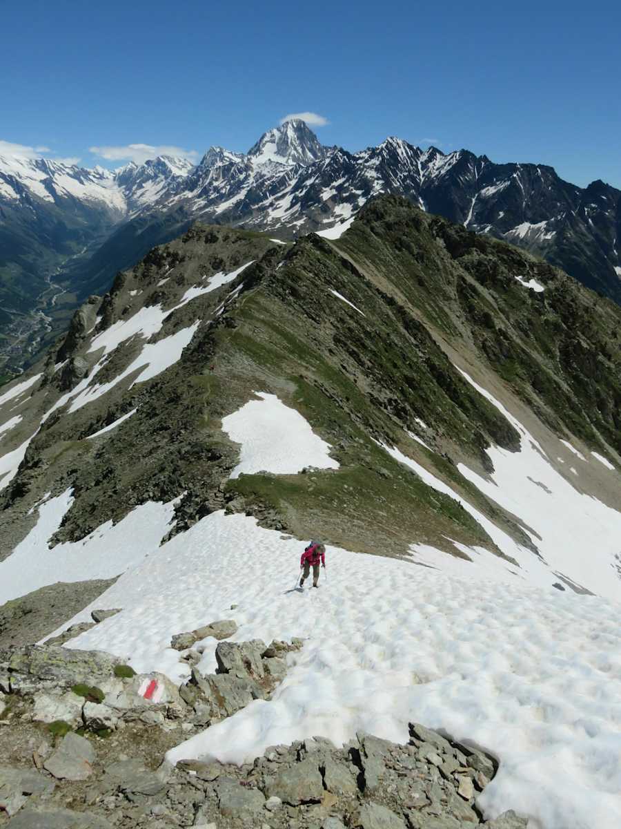 Man traversiert unterhalb des zuletzt erwähnten Vorgipfels und erreicht über einen kurzen Grat den Schlussanstieg zum Niwen (2.769 m). Hier kann man bei ausgiebiger Gipfelrast das herrliche Panorama der Walliser Alpen bis zum Mont Blanc ausgiebig geniessen.
