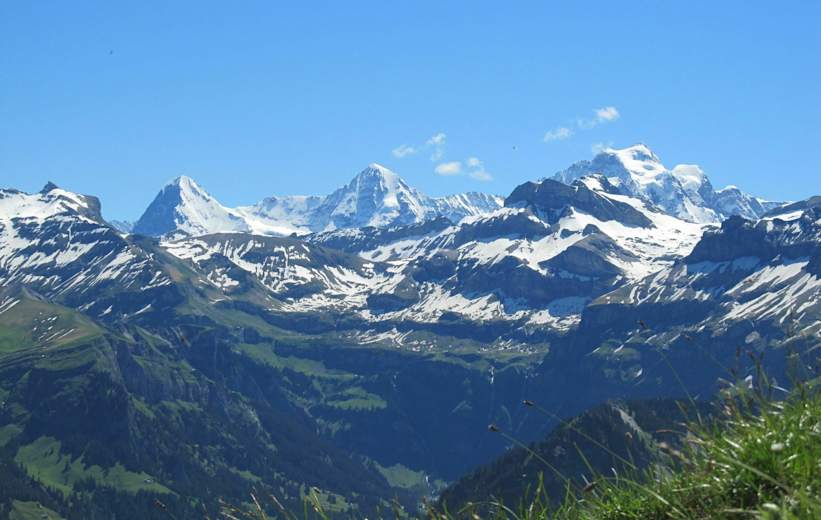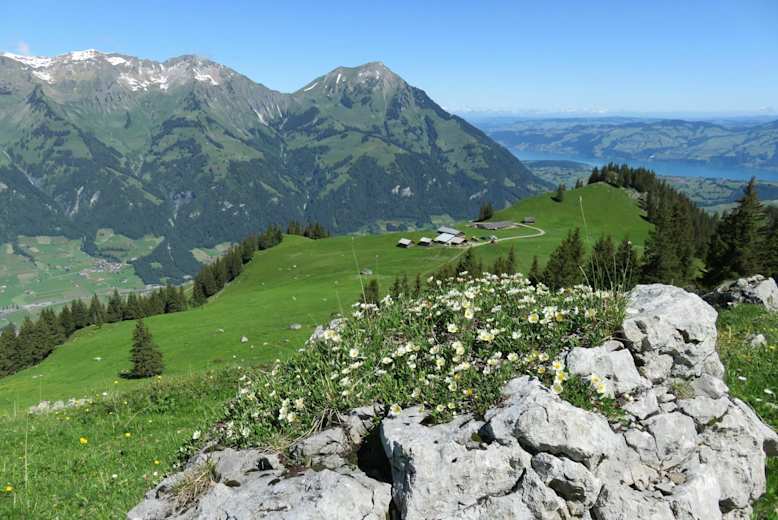 Panorama an der Alp Obere Geerene zu Thunersee und Niesen Foto: Felix Deprez Zarter Besucher auf hübscher Blüte Foto: Felix Deprez Das Frutigtal und die Niesenkette unter wolkenlosem Himmel Foto: Felix Deprez Finaler Gipfelanstieg Foto: Felix Deprez Ausblick auf das berühmte Dreigestirn Foto: Felix Deprez Bildergalerie (5)