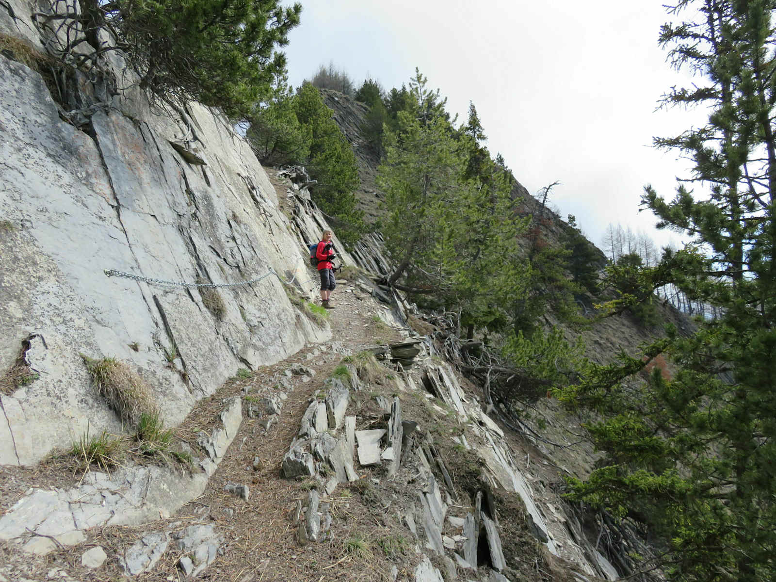 Nach nun „gemütlicherem“ und stets gut beschildertem Wegverlauf am Grat entlang, erreicht man eine erste gesicherte Passage, welche etwas Aufmerksamkeit erfordert. Wieder eröffnen sich beeindruckende Blicke in die Morgeschlucht.