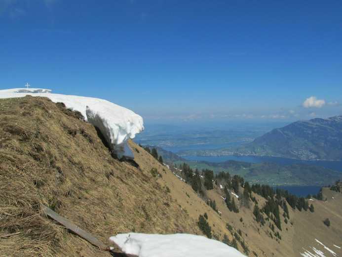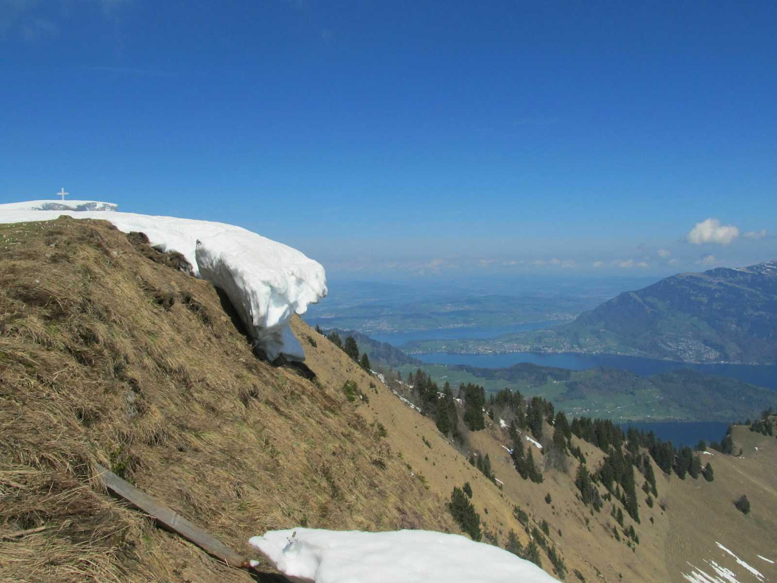 Nach Bleiki ist das steilste Stück des heutigen Aufstiegs zu bewältigen und man erreicht dann den Übergang Bleikigrat und zieht am Schlusshang weiter hoch bis zum Gipfel des Buochserhorns (1.807 m). Von hier hat man eine phantastische Aussicht über den verwinkelten Vierwaldstättersee, die Gipfel vom Oberbauenstock zum Brisen und sogar die Wetterhorngruppe und der Mönch sind in der Ferne zu erkennen.
