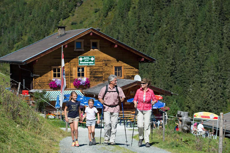 Die Steineralm auf 1.600 m bei Neukirchen am Großvenediger ist ein beliebtes Ausflugsziel für Groß und Klein. Die Hütten-Familie Wanger „steht auf die Steineralm“, so auch der Slogan auf ihrer Website. 4 Mädl's und ein waschechter Naturbursch, bewirtschaften die Hütte seit nunmehr 50 Jahren und sind ein Familienbetrieb mit Herz. Hier wird man mit traditioneller Pinzgauer Küche und all ihren Schmankerln verwöhnt.