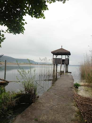 Weiter in Richtung Westen, stets über flaches Sandufer – einstigen Seegrund – läuft man dem Schilfgürtel folgend nach Lüscherz, wo man zur Zeit der Juragewässerkorrektion mehrere urgeschichtliche Ufersiedlungen entdeckt hat.